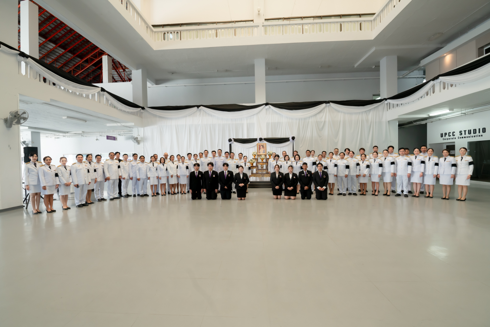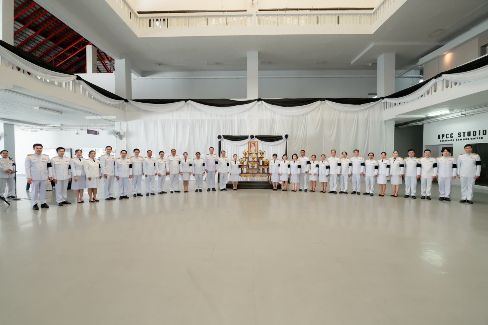 โดยรองศาสตราจารย์ ดร.สุภกร พงศบางโพธิ์ อธิการบดีมหาวิทยาลัยพะเยา เป็นประธานในพิธี พร้อมด้วย รองอธิการบดี คณบดี ผู้ช่วยอธิการบดี ผู้อำนวยการกอง/ศูนย์ หัวหน้างาน และบุคลากรมหาวิทยาลัยพะเยา เข้าร่วมพิธีถวายความอาลัย ณ ลานห้องโถง ชั้น 1 อาคารสำนักงานอธิการบดี มหาวิทยาลัยพะเยา เพื่อแสดงความจงรักภักดี ถวายความอาลัยและน้อมรำลึกในพระมหากรุณาธิคุณอันหาที่สุดมิได้
