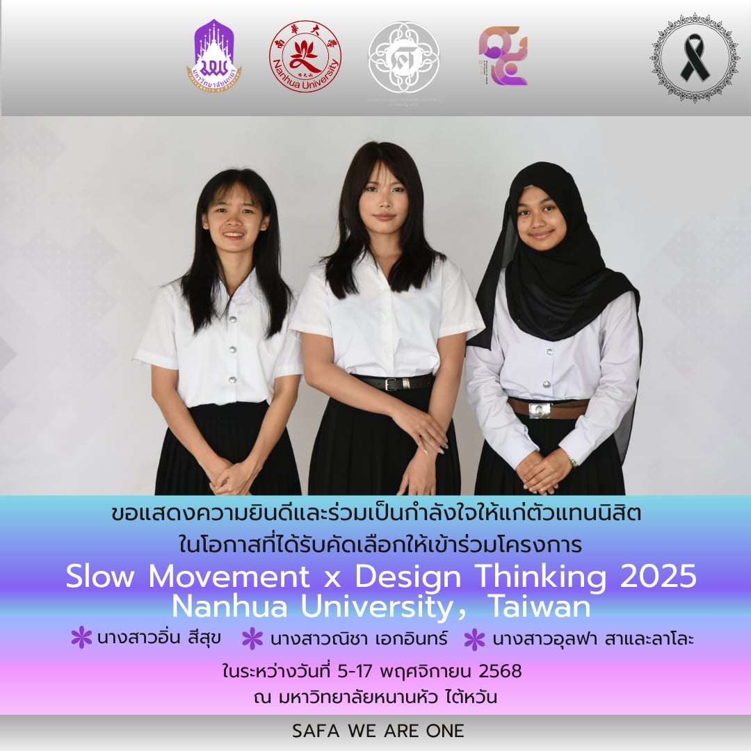 1. นางสาวอุลฟา สาและลาโละ นิสิต สาขาวิชาสถาปัตยกรรม