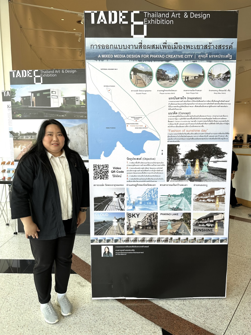 Dutrudee Makprasert, Architecture lecturer, was selected to exhibit the creative work “A Mixed Media Design for Phayao Creative City” at the 6th Thailand Art & Design Exhibition, organized by The Association of Siamese Architects under Royal Patronage, in collaboration with The Thailand Art and Design Network, held at the Bangkok Art and Culture Centre (BACC) from 6–25 January 2026.